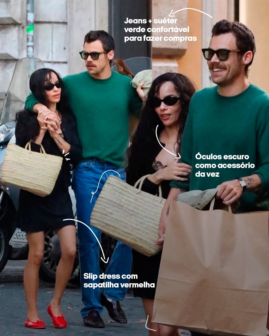 O que acontece quando dois nomes já conhecidos pelos belos looks se unem? É assim que nasce um verdadeiro casal fashionista, como é o caso de Zoë Kravitz e Harry Styles. Juntos, os dois sempre aparecem com looks belíssimos, mas também confortáveis e casuais. E o melhor: em diversas ocasiões, as roupas combinam entre si. Um belo match! A seguir, confira os melhores looks: