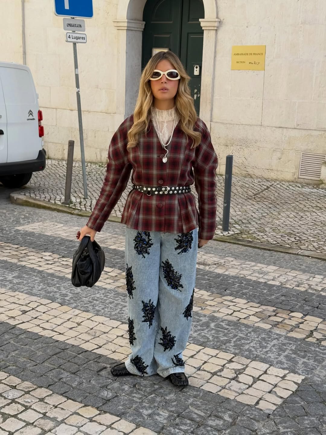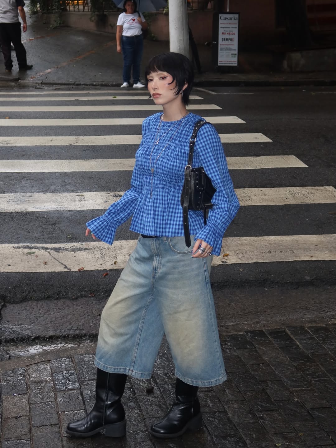 Para as mais ousadas, o jeans com aplicações é a escolha da vez. Entre pedrarias, brilhos e pérolas, a proposta é clara: soltar a criatividade e deixar o denim brilhar como protagonista do look.
