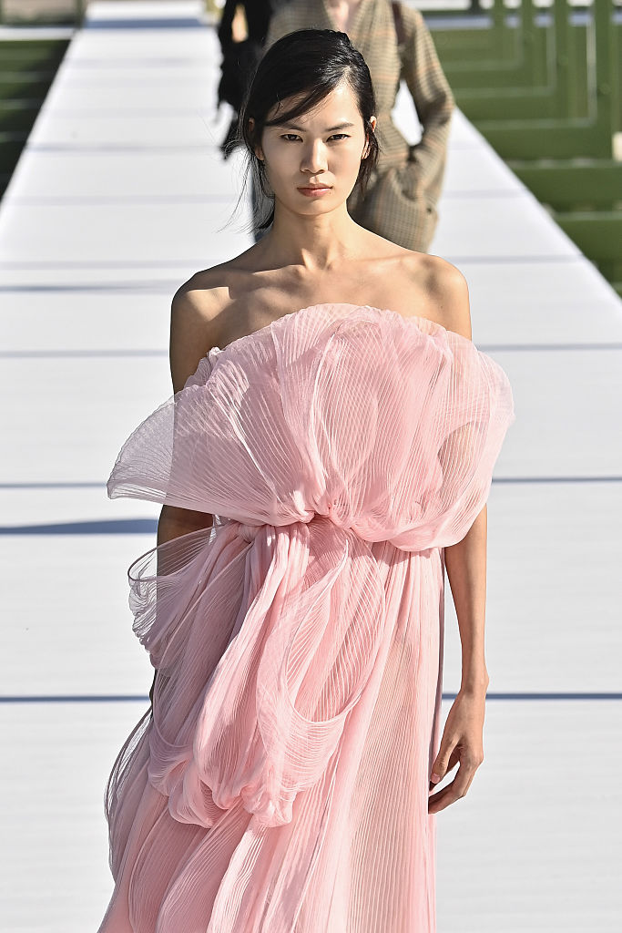 As referências dialogavam diretamente com o espaço: a natureza e a história do jardim serviram de ponto de partida, assim como a coleção de 1949 da maison, Milieu du Siècle, que surgiu reinterpretada com um olhar contemporâneo.