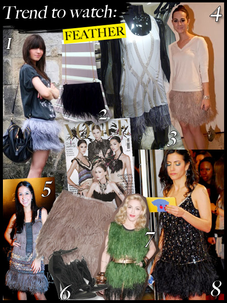 Procurando no shopping e pela internet, já encontrei por aí versões pra todos os gostos (e bolsos!). Tem pluminhas na bolsa da Maria Filó (2), vestido da Le Lis Blanc (3), saia da Topshop (6) e sandália da Givenchy (6)! É só procurar que acha…