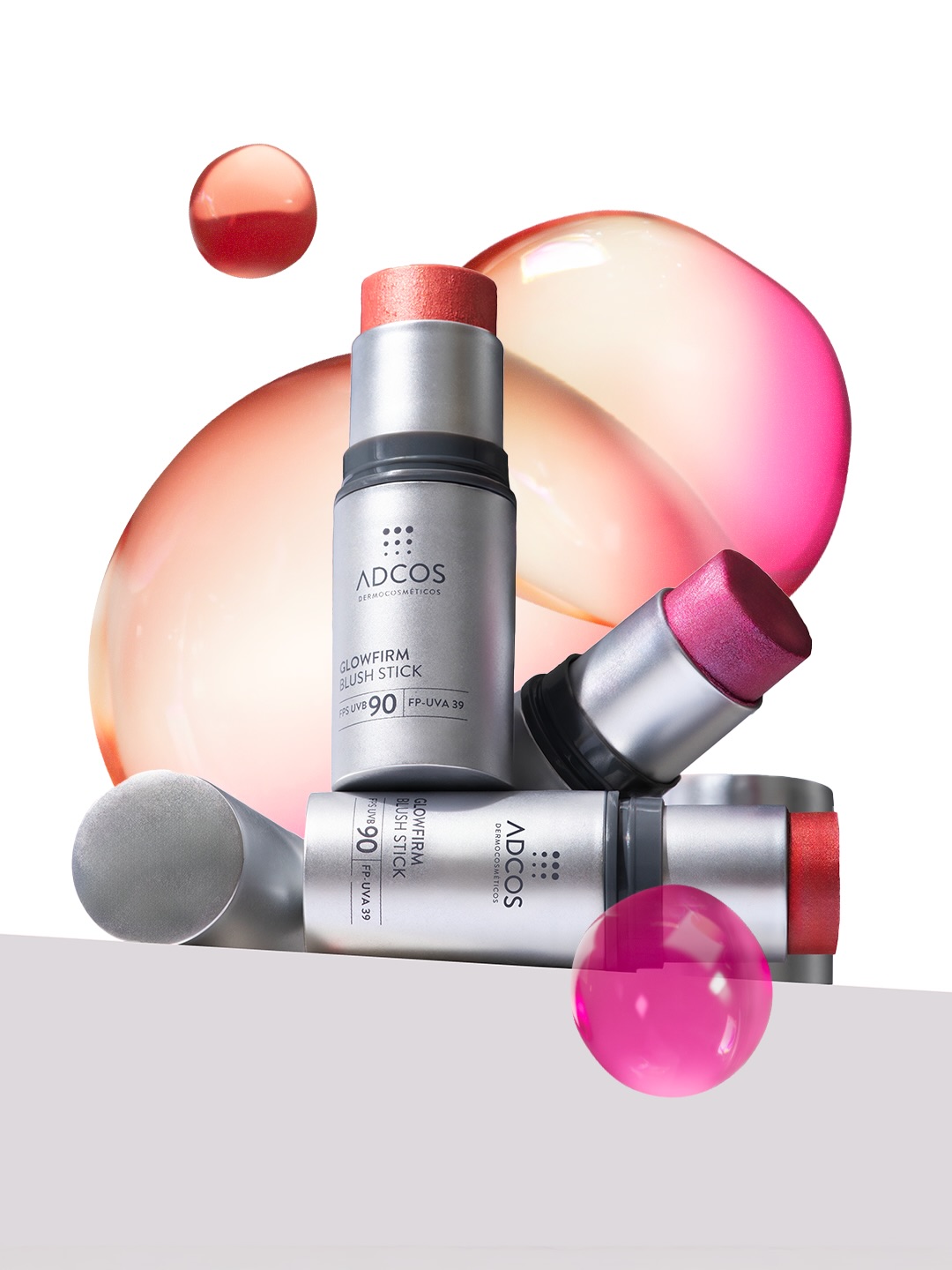 O GlowFirm Blush Stick da Adcos eleva o conceito de “beleza que trata” ao unir tratamento, maquiagem e proteção em um único produto, criado para acompanhar o ritmo da pele brasileira. Lançamento disponível nas cores Fúcsia, Coral Rosé e Terracota, ele entrega alta performance graças à combinação de Peptídeo Pró-Colágeno, que estimula a síntese de colágeno em 351% e de glicosaminoglicanas em 146%, com microesferas de Ácido Hialurônico, responsáveis por reter água em diferentes camadas da pele. O resultado é um blush que promove firmeza, hidratação e viço imediato, enquanto colore suavemente e trata a pele ao longo do uso.