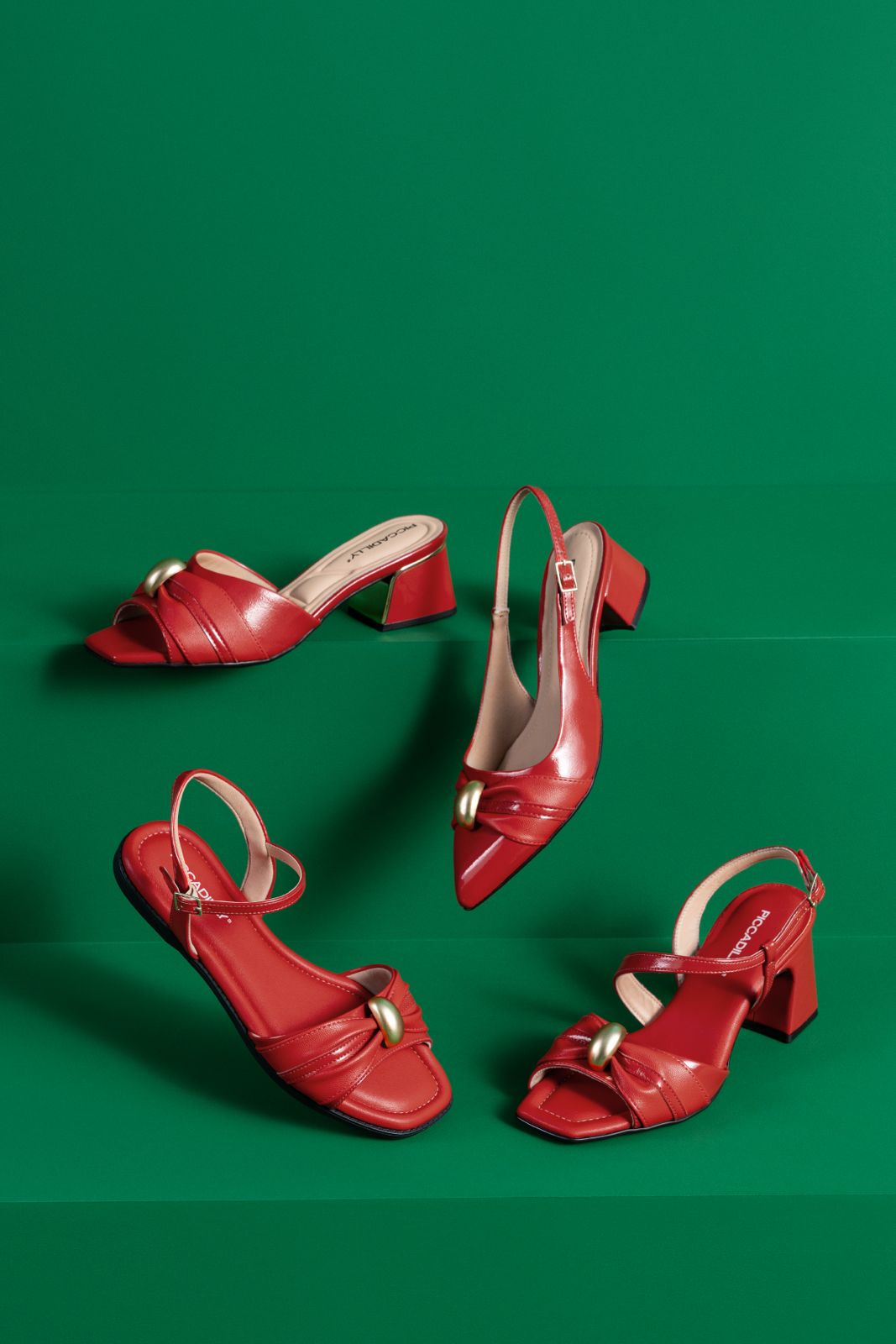 A Jaq começou com uma proposta moderna e chic: bata branca, calça de alfaiataria marrom e uma sandália baixa vermelha em verniz, estilo mule. O toque de cor faz toda diferença e transforma o look em uma opção perfeita para jantares e confraternizações onde o clássico ganha um toque de personalidade.