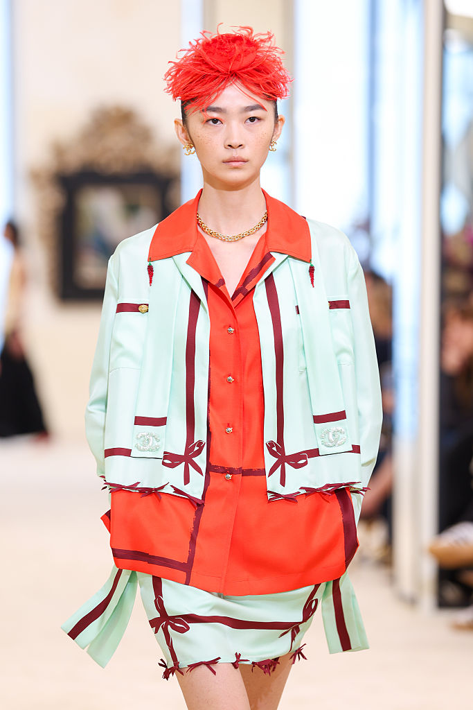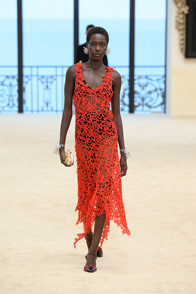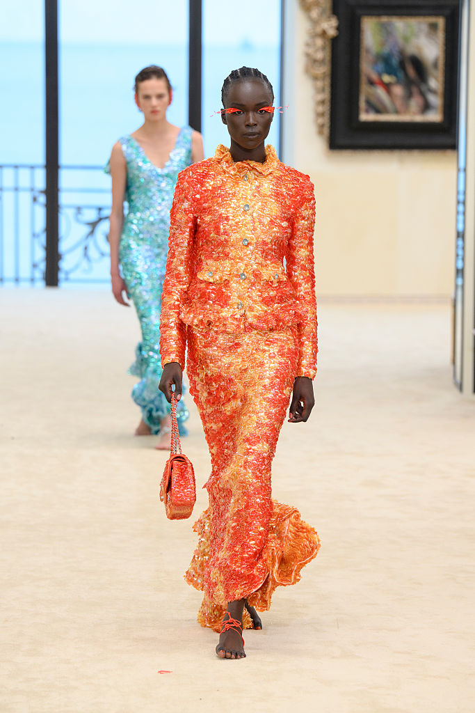 Roupas de verão pedem cores vibrantes, e a Chanel levou isso para a passarela. O laranja vem como o “queridinho” da vez, seja em um visual monocromático com mood “sereia”, que chama atenção de imediato, ou na combinação com outros tons, como o suave verde menta.
